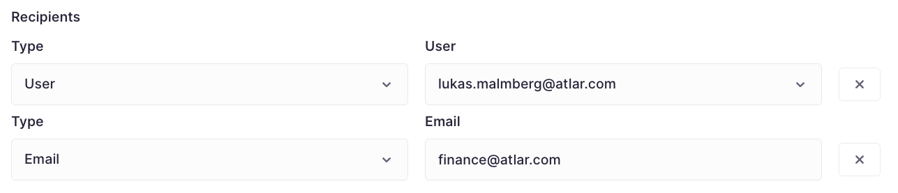 - When to use: Use this when you need to ensure a specific person (e.g. a Finance Director or a shared inbox) always receives an alert.